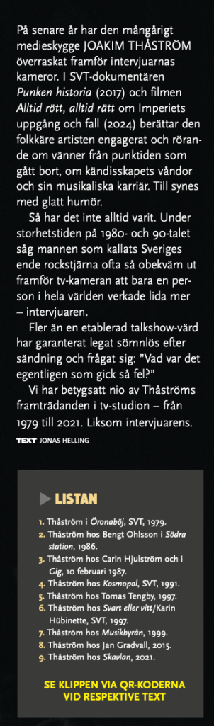 Jo – dom har alla tampats med den inte alltid helt enkla uppgiften att ha Joakim Thåström framför sig, och sin tv-kamera.